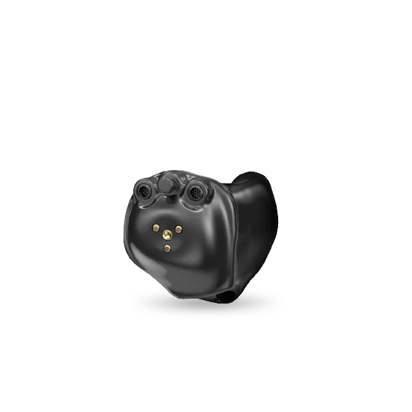 We typically recommend either a CROS or a BiCROS system. A CROS system consists of a single microphone and single receiver contained in two individual devices (one for each ear). The ear with little-to-no functional hearing is fit with the microphone-equipped device, and the ear with normal hearing is fit with the receiver-equipped device. Sound arriving at the ear with hearing loss will then transmit through a wireless connection to the receiver-equipped device on the normal-hearing ear — to help you hear sounds regardless of which side they’re coming from.
